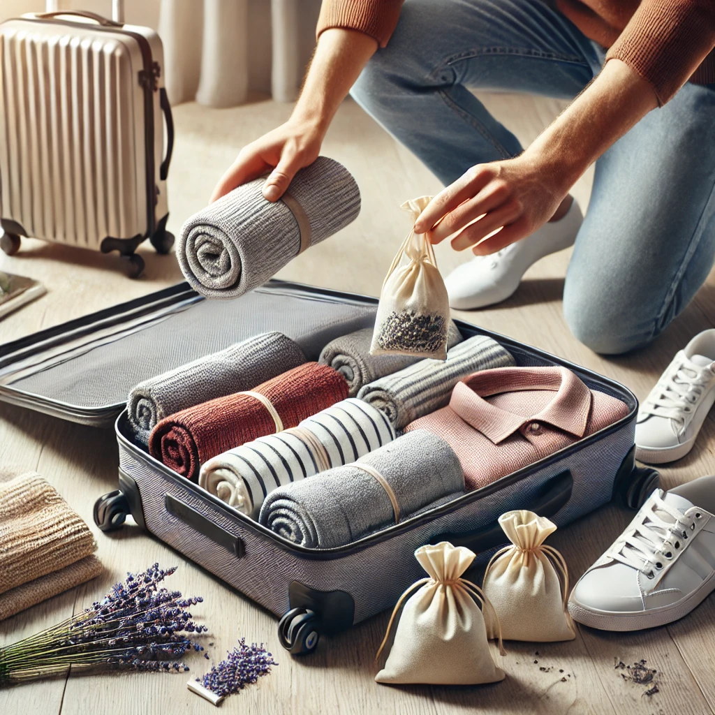Coloca pequeñas bolsas de lavanda o papel de ropa perfumado en tu maleta. Estos elementos no solo mantendrán tus prendas con un olor fresco, sino que también ayudarán a prevenir las arrugas y la acumulación de humedad en tu ropa.